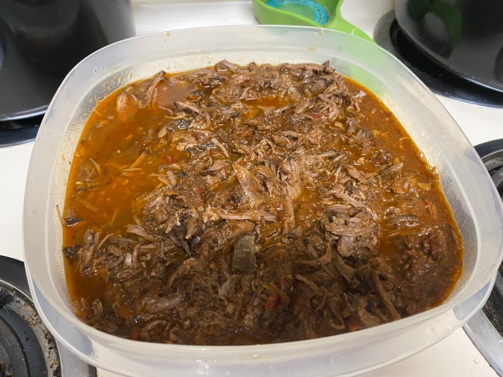 - Save the remaining birria sauce (consomé) in a container for dipping.